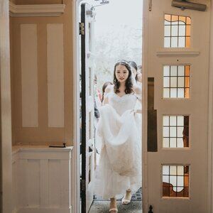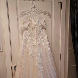 This beaded lace and tull ball gown in vintage rose from Jewel filled my heart with joy and unforgettable memories on my special day. Now the dress is ready to bring it's magic to another bride's special day and experience the same enchantment.