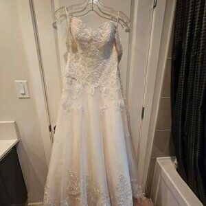 I will include the veil (retail price is $267.57 + tax) shown in the picture and include a garment bag (The essential bridal bag) that I purchased from David's Bridal along with it.