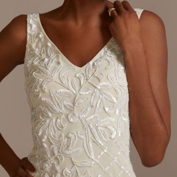Wedding Dress - beaded sheath v-neck midi dress with low back