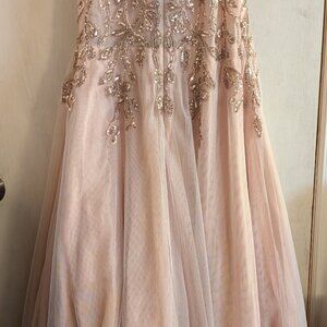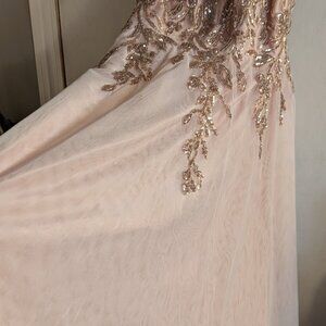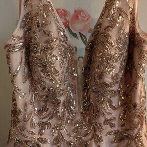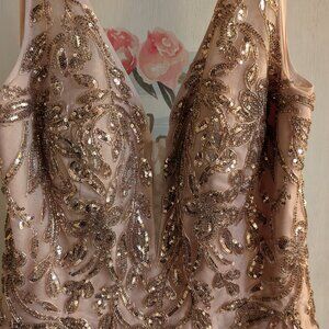 This dress is so beautiful. It is champagne/rose gold and just stunning.