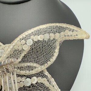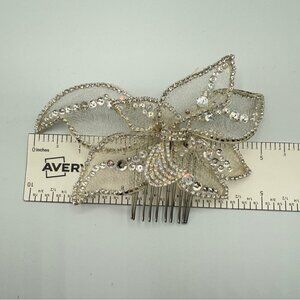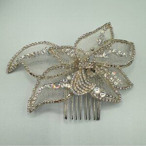 This elegant silver hair comb features intricate floral designs crafted with delicate beadwork, perfect for wedding bridal hairstyle. The asymmetrical and organic shape gives it a vintage charm, for that glam, old hollywood style.