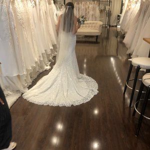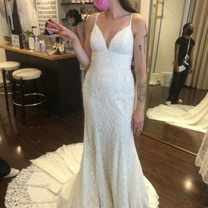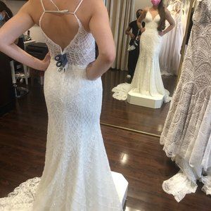 Fully beaded wedding dress for sale. It is an unfitted sample. The dress is stunning and fully beaded. I did not end up wearing this dress for my wedding, and am hence selling it.