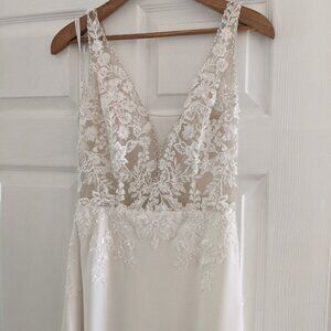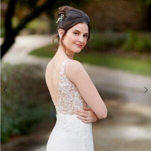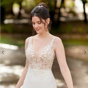 The dress was not hemmed (I am 5'9" and wore 2-3" heels) but it was taken in at the waist. The dress was a bridal size 8 but it was altered to fit a street size 2/4. It could also be suitable for someone with a larger bust than mine!