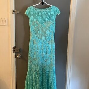 Wedding guest prom evening mermaid fairy beaded maxi Turquoise Lace Dress