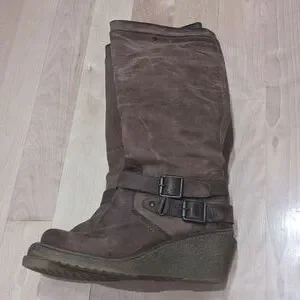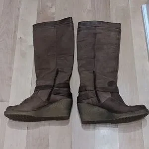 Aldo tall wedge boots with grippy sole, leather, brown, size 37. in great solid condition