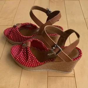 Tamari’s red polka dots wedge sandals.