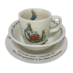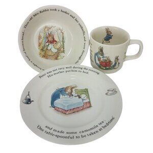 (3) Children's Dinnerware = Wedgewood - Beatrix Potter - mug, bowl, plate