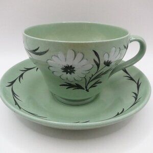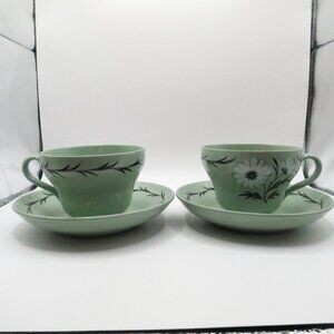 Wedgwood Aster Celadon Green Teacup Saucer Set of 2 England