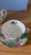 This set includes teapot, teacup and saucer. The box has scuffs and a small tear inside but the porcelain is in new condition.