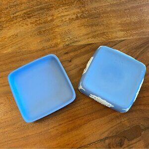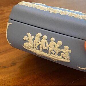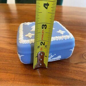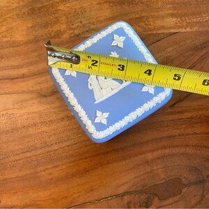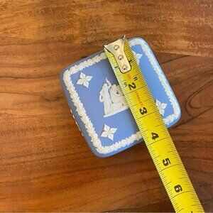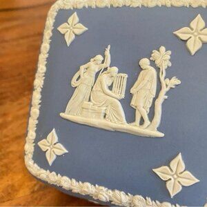 Pretty blue and white matte finish vintage Jasperware trinket box in square shape from Wedgwood England