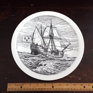 Mid-Century Wedgwood's The Griffon dinner plate, part of Wedgwood's Historical Canadian Vessel series. Designed and drawn by Rowley Murphy, an Official Royal Canadian Naval War Artist. Made in England 1950's