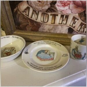 Charming Wedgwood cup / bowl and plate featuring Peter Rabbit design. Ideal for collectors or display.