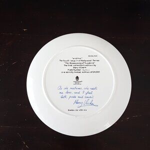 Backstamp: "Wistful - The fourth issue in a Wedgwood Series The Blossoming of Suzanne - The first collector's edition by Mary Vickers - Plate Number 34968 in a strictly limited edition of 24,000 - Wedgwood Bone China - Made in England - As she matures, she needs me less, and I feel both pride and sorrow - Mary Vickers - Bradex 26-W90-4.4"