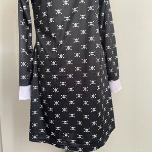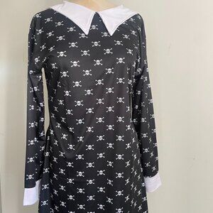 Wednesday Addams Costume Dress – Black Skull Print - L