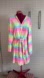Vibrant robe with a tie waist. Features multicolor stripes. Perfect for lounging.