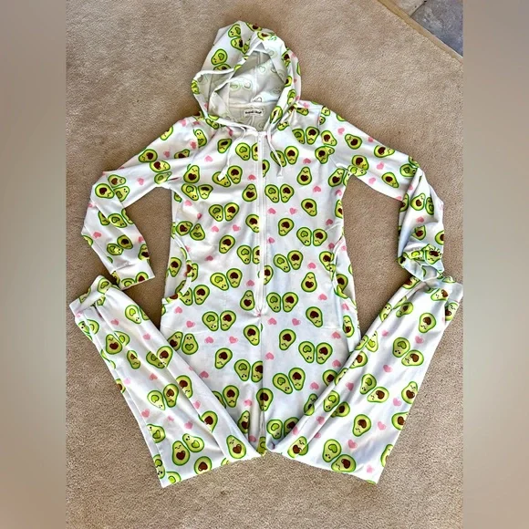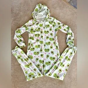 Weekend Edition onesie. Sz L. Super soft velour type material. Fun print. Perfect for your next sleepover. 2 front pockets.