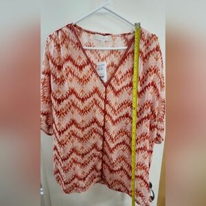 Stylish women's top featuring a vibrant chevron pattern. Perfect for adding a pop of color to your wardrobe.