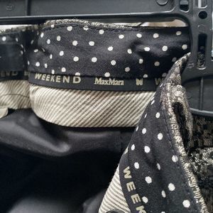 Features a hook and slide bar front closure with a button and zipper, two back trouser pockets, and a slim ankle length, tapered design.