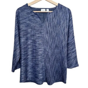 Weekends By Chico's Womens Size Medium Nocturne Navy Vneck 3/4 Sleeve Tunic