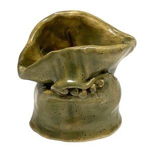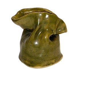 Weird Unusual and One of a Kind Pottery Vase Planter Green Glazed Eclectic