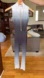 Elegant grey and white ombré dance unitard with double back cut outs and vertical front mesh insert by Weissman.