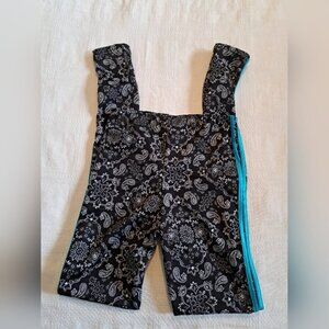 Weissman girls medium black & white floral full length legging with teal stripe, flower and paisley design EUC