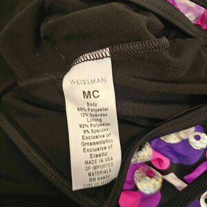 Weissman purple black frilled 4-way stretch shorts bodysuit jazz dance costume size Medium Child. Age 8-9.