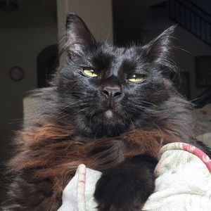 a Chantilly/Tiffany breed! He was found at 10 weeks alone on the street and needed an immediate blood transfusion because he was littered in fleas! He’s now 6 ☺️