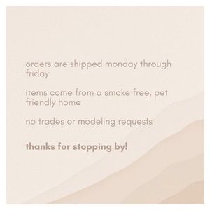 W E L C O M E ⛱ Your closet’s looking great 👍 So glad you joined! Here you'll find a wide audience eager to support & share style. You'll learn the art of negotiation, marketing techniques, and styling incentives in a whole new light. Quick tips: share your items often, include key words in descriptions, and beware of scammers. Let me know if you have any questions 😊 Happy Poshing!