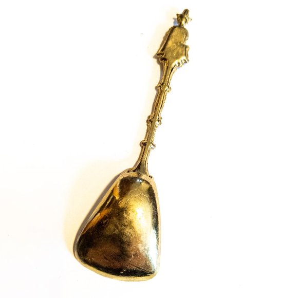 Welsh Collectors Spoon Brass Lady Spinning Wheel Vintage Wales Souvenir 1980s