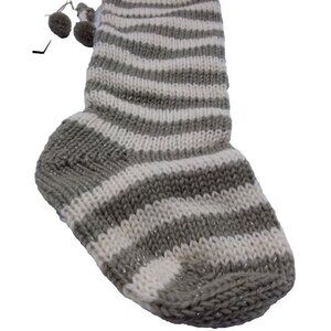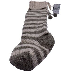 West Elm Striped Knit Wool Christmas Holiday Stocking Grey Handcrafted Nepal