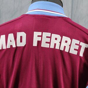 Up for sale is a vintage West Ham United jersey. It is a 1997 home jersey with a maroon base colour with blue trim. The front of the jersey has the West Ham logo crested on and Pony sponsor logo stitched in. The back of the jersey has Wil Feret crested on in white felt letters. What a great jersey do not miss out on it.