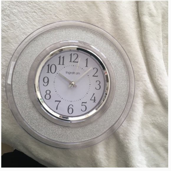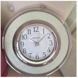 Westclox Ingraham 12-Inch Round Glitter Wall Clock in SILVER clear nwt