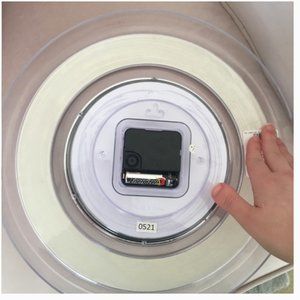 I am selling a silver and clear clock---NOT PINK! pink is just to show the stock photo of how it looks since my photos don't do it justice! I tested it with a battery everything works! it doesn't have a back though so you will need to use a hook-- can use a command hook if you don't want to nail it to the wall as it is light enough to be supported!