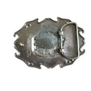 Add some western flair to your outfit with this belt buckle that features a faux turquoise stone set in a swirly yellow inlay. The buckle is designed with a rodeo, horse, and cowboy theme, making it perfect for any western enthusiast. The metal buckle is accented with rhinestones, adding a touch of sparkle to your outfit. This buckle fits a 1.5-inch belt and is perfect for men who want to add a touch of personalization to their western wear. Missing a couple rhinestones, pictured.