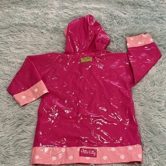 For your consideration is a preloved good condition western chief hello kitty raincoat. Size 3T . cotton lining. Five snaps down the front. Little hood with a bow on it. There is a slight flaw on the inside front I’ve shown in photo a little dark mark, not too noticeable when jacket is closed. And also my child’s name has been crossed out inside. This is an adorable little coat, and still has a lot of life left to a new home. Thanks for looking!