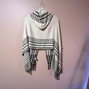 Western HOODED Fringed Bohemian Poncho like wrap super soft ONE SIZE EUC