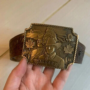 Western Heritage Calgary Big Buckle and Belt Brown Leather 34