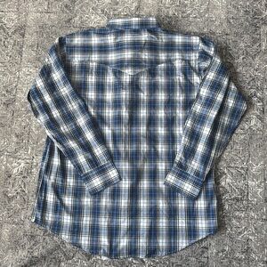 Western MWG Apparel 2XLT blue plaid pearl snap long sleeve.
