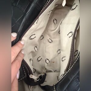 Elevate your style with this chic black and brown handbag. Perfect for any occasion, this bag combines elegance with functionality.