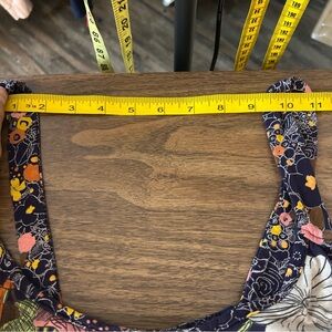 Chic navy dress with vibrant floral patterns. Ideal for any occasion.