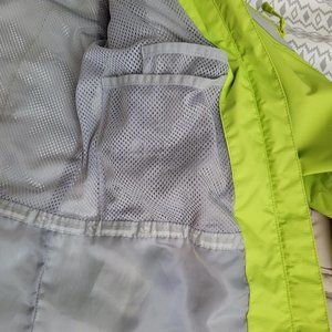 Wetskins X-TREME series windbreaker jacket. Ladies size small. Bright lime green color. Removable hood. In like new condition.