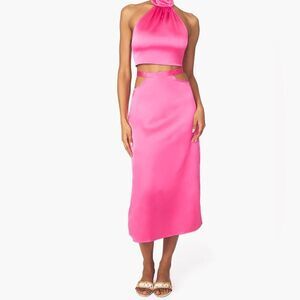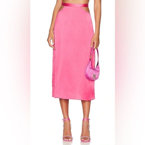 Weworewhat Cut Out Satin Charmeuse Midi Skirt - Hot Pink Size Small