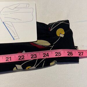 Step into a classic, elegant look with this stunning 100% Silk blouse from What Goes Around Comes Around. This piece exudes a beautiful vintage vibe, likely dating to the 1970s or 1980s, and features a captivating, Art Deco-inspired graphic print. (That's a fantastic vintage blouse! The brand "What Goes Around Comes Around" is known for high-quality vintage and designer goods)