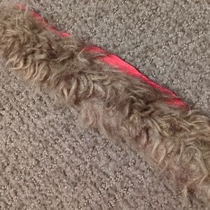 Euc except for a couple marks on arm seam and the inner waist elastic appears to have broken so it's currently tied together. fur hood is matting as is usual with normal wear. I imagine a tailor could easily replace this like new for a small charge.