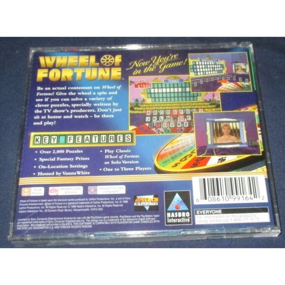 This is the game Wheel of Fortune for PS1 (Playstation 1). The game is in great condition and comes with case and manual. It was well tested and works well. The game is sold as is.