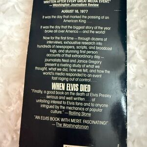 When Elvis Died by Neal and Janice Gregory is a compelling exploration of the events surrounding Elvis Presley’s death on August 16, 1977. Originally published in 1980 by Communications Press, this biography offers an in-depth look into the final days of the King of Rock ‘n’ Roll, examining the circumstances and impact of his untimely passing. Black cover with white and yellow text. Features an image of Elvis Presley.