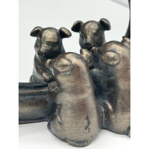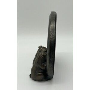 This whimsical mirror is a must have for any pig lover. It’s absolutely loaded with character and style with two little pigs staring at their reflections. It has a brushed bronze type coloration but it feels like some type of possibly ceramic material. Measures approximately 6” high by 8” wide. There’s a teeny tiny flaw on the mirror circled in the last photo and a little bit of wear. Please view photos for details.