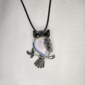 This enchanting necklace showcases a beautifully detailed owl pendant crafted in silver-toned metal, featuring a captivating faux stone at its center. The intricate feather textures and dimensional form add a touch of elegance and whimsy to any ensemble.