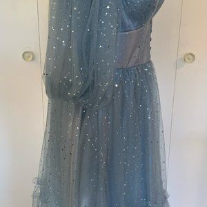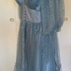 Stunning midi pale blue star dress with full sleeves. Commissioned on Etsy and modeled after Tueta Matoshi dresses.